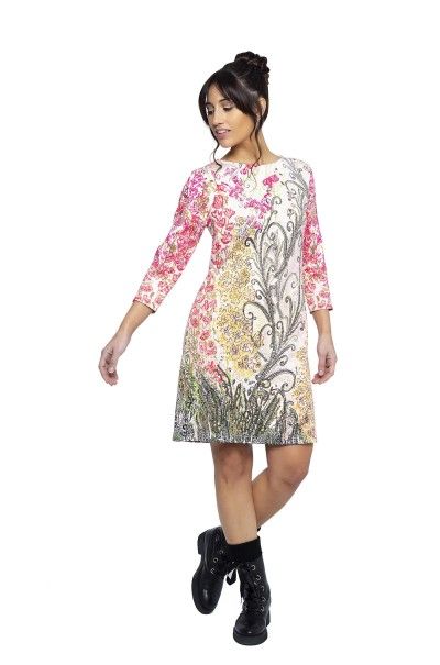 92.90 EUR Vestido ligeramente evase con manga 3/4 y escote redondo. Estampado tanto delantero como espalda y bordado de lentejuelas.