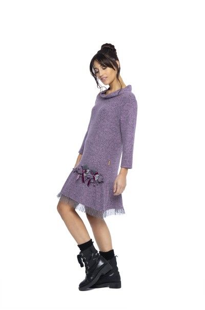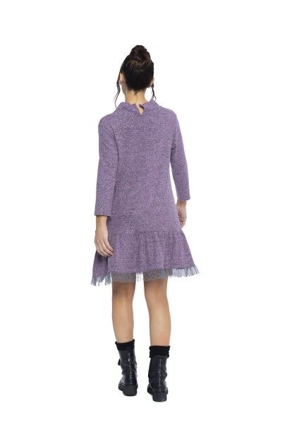 99.90 EUR Vestido fluido realizado en nuestro suave punto de hilo torcido en color rosa. Volante de dos tejidos que rodea el bajo del delantero y aplicación de varios tejidos.