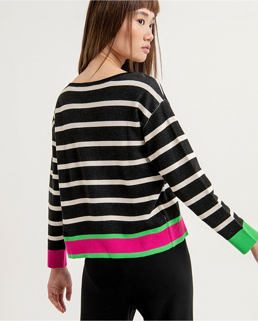 Jersey de Jacquard corto y ancho con escote barca. Estampado a rayas