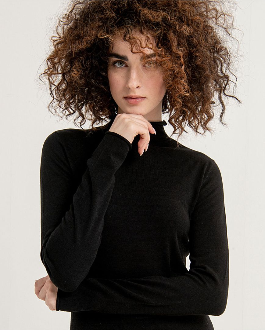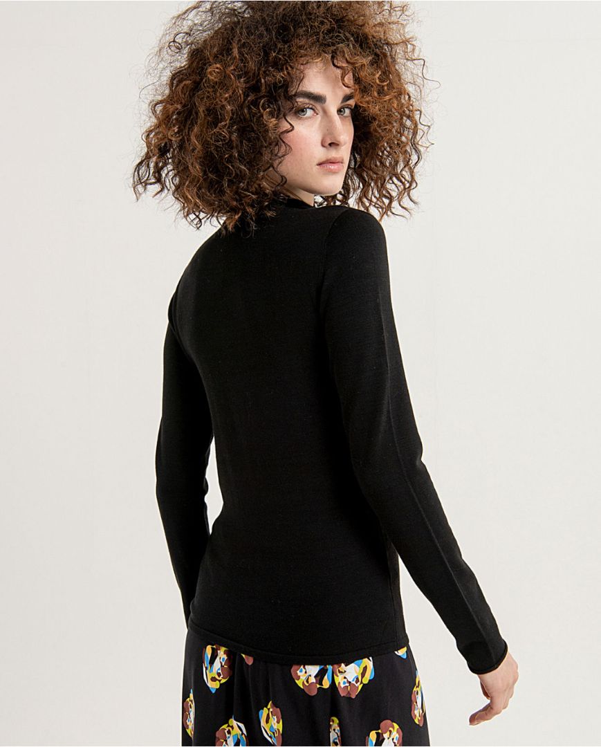 Jersey de punto cuello Perkins elástico y liso Negro
