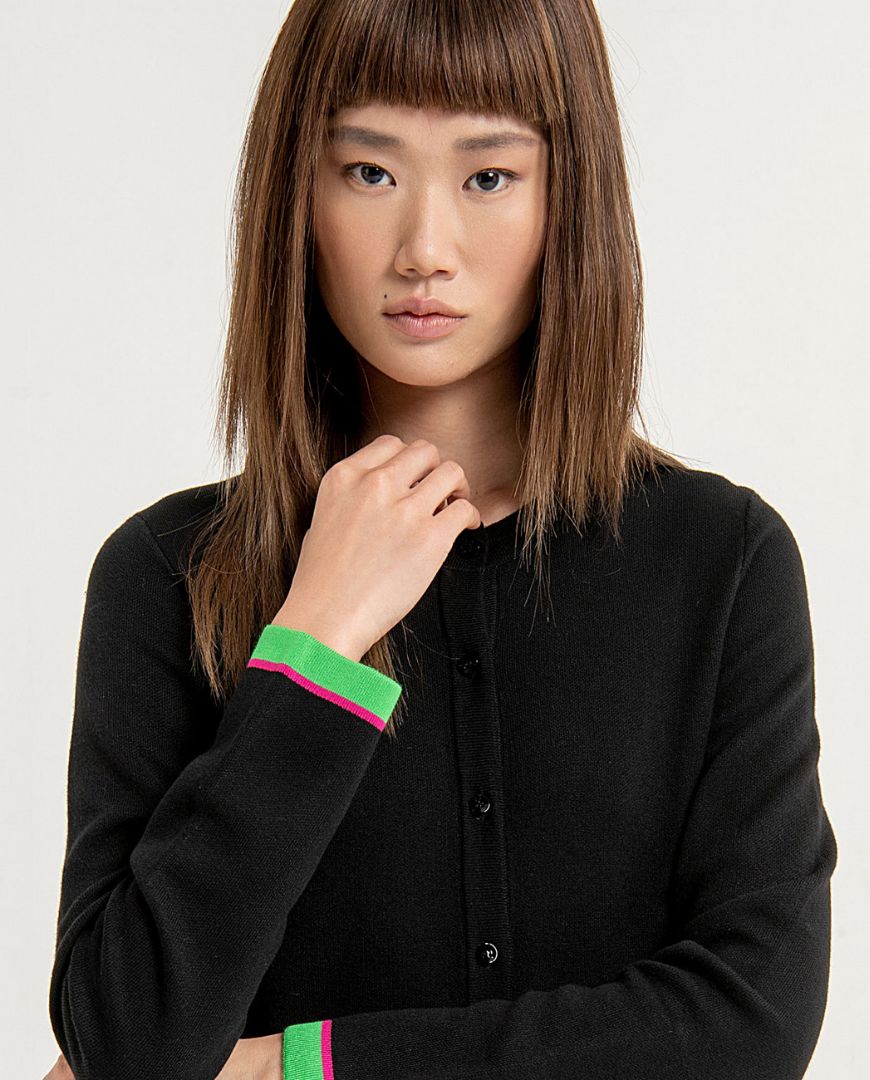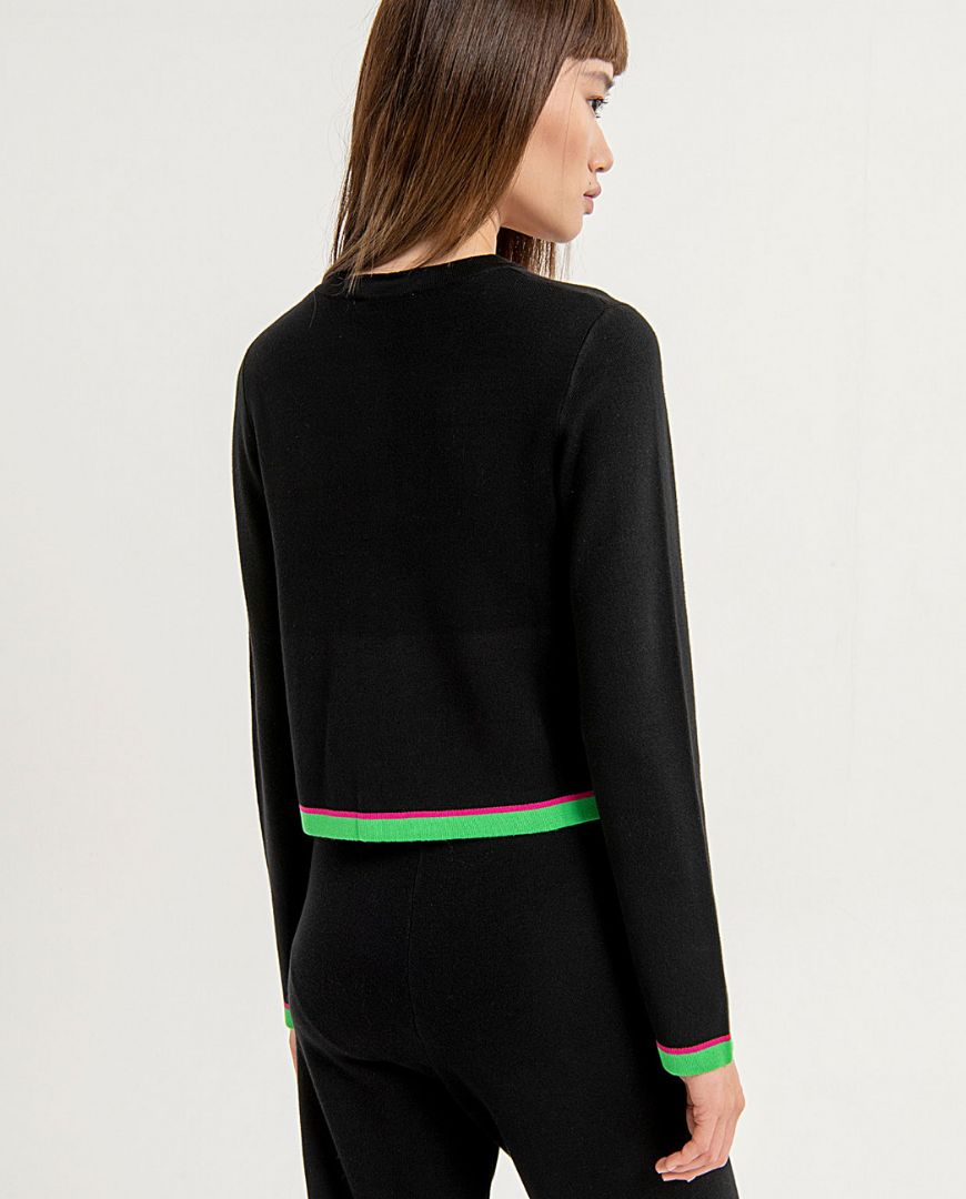 Chaqueta cárdigan de Jacquard corta cuello redondo con ribete y cierre con botones. Estampada.