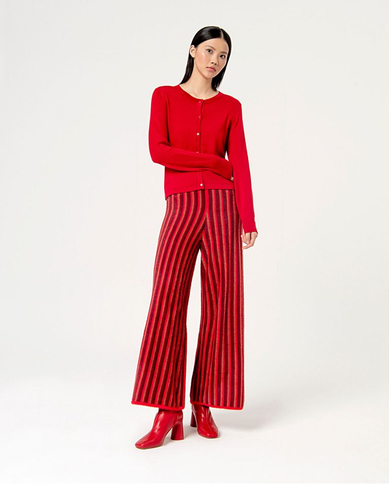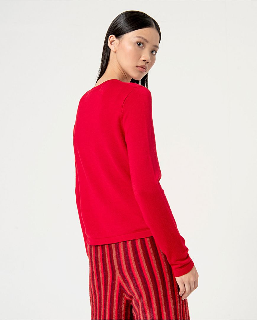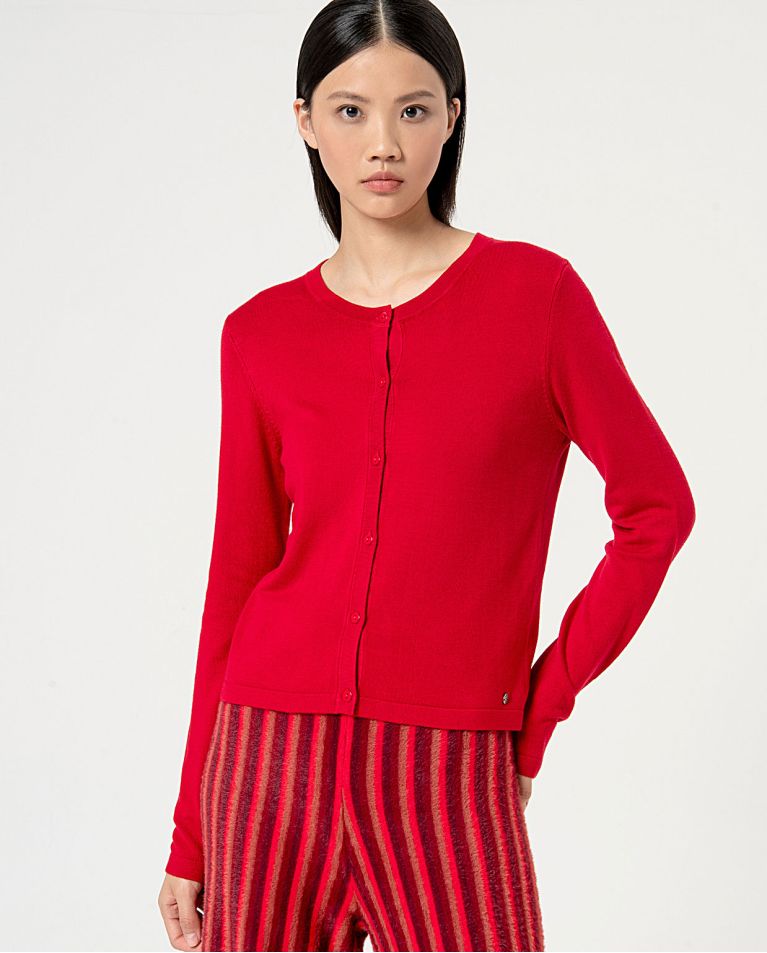 Cárdigan corto de punto con escote redondo. Cierre frontal con botones. Color liso.