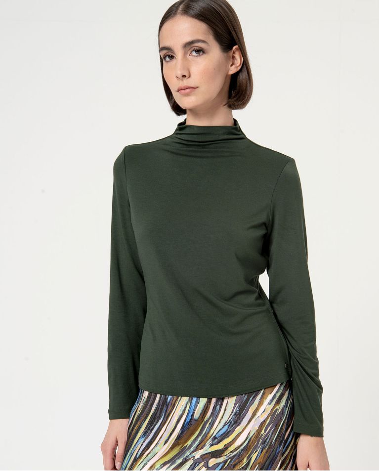 Camiseta básica de manga larga y cuello perkins. Fabricada en viscosa de bambú, suave y elástica.