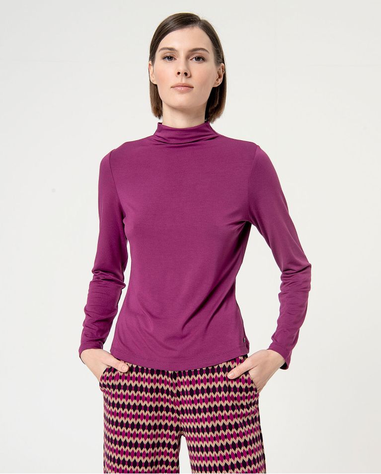 Camiseta básica de manga larga y cuello perkins. Fabricada en viscosa de bambú, suave y elástica.