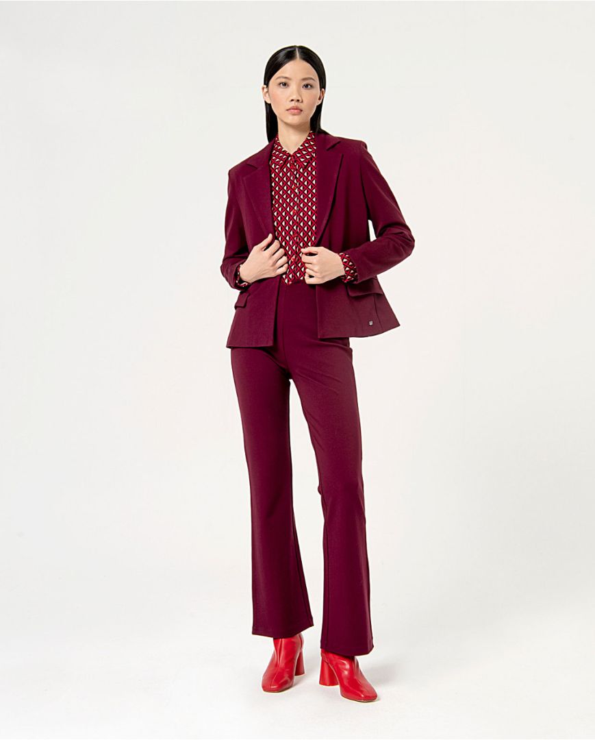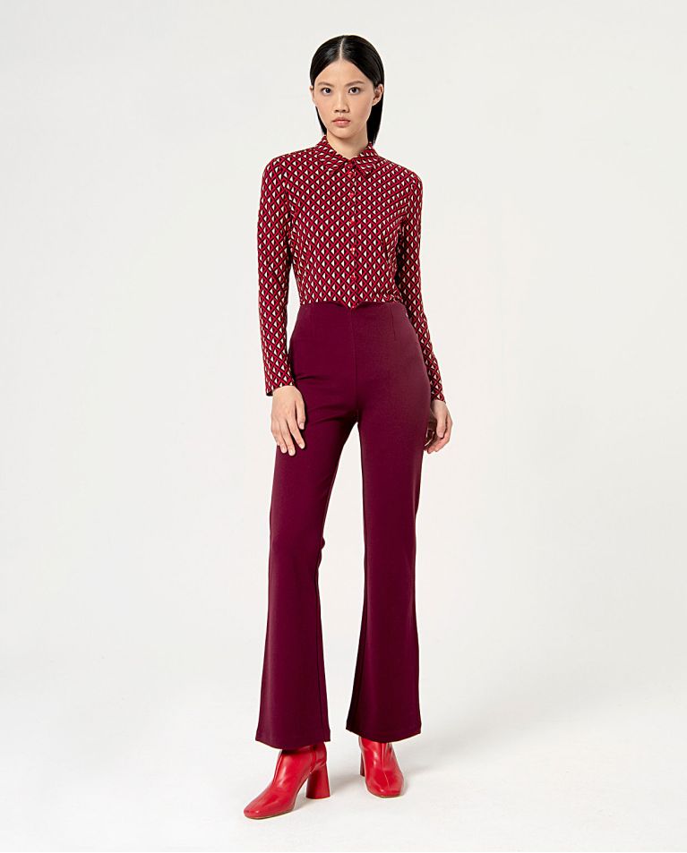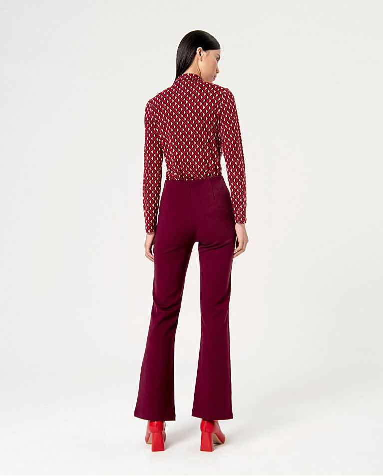 Pantalón flare de punto roma elástico y sin cierres. Color liso.