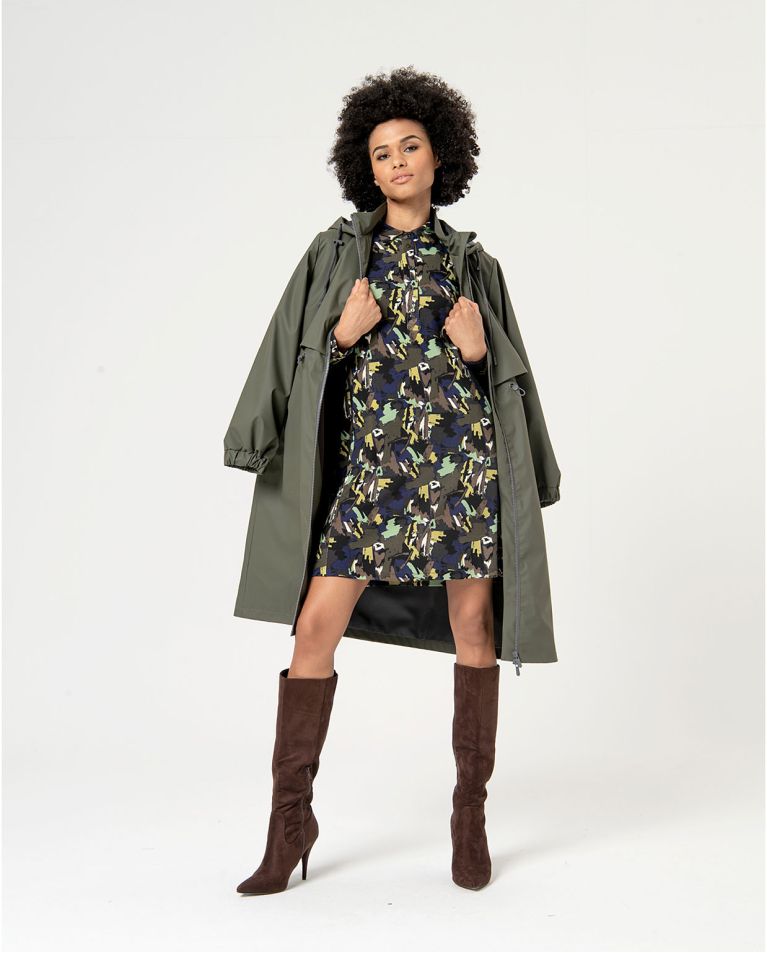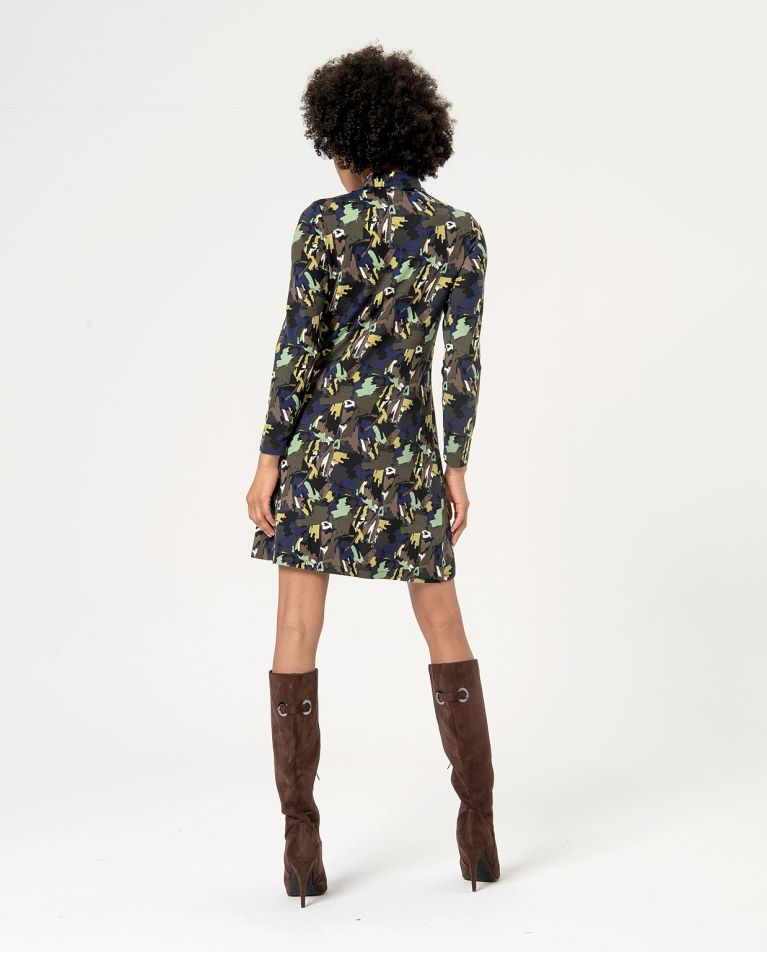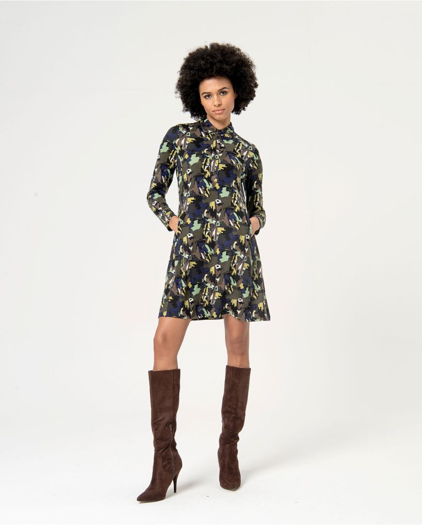 Vestido manga larga y cuello camisero de largo a rodilla. Punto elástico muy suave y cálido.