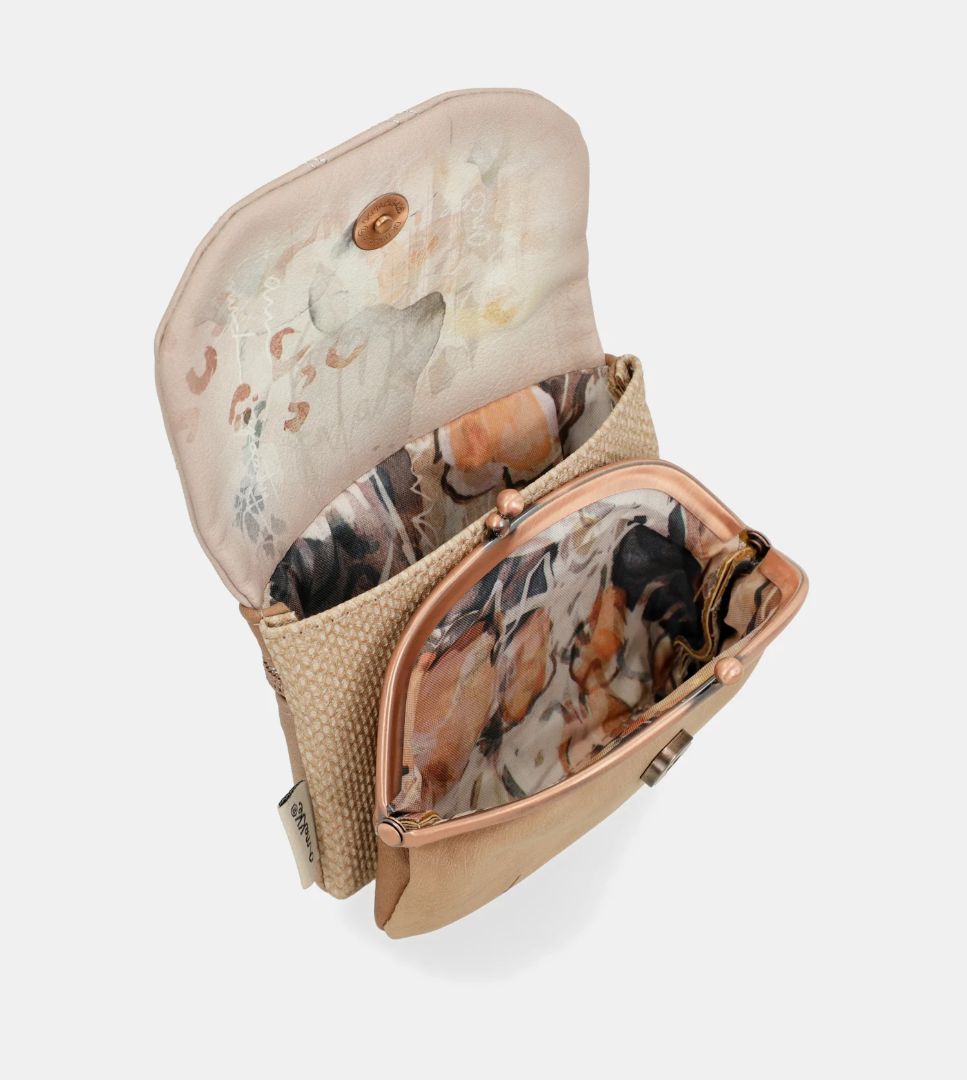 Este monedero es un modelo con solapa, que cuando abres te descubre dos compartimentos: uno con cierre de boquilla, más otro trasero. Además, tiene detrás un bolsillo al que se accede mediante cremallera. Todo el interior va forrado. Porque los recuerdos inspiran el futuro, ¡prepárate a disfrutarlos con Anekke