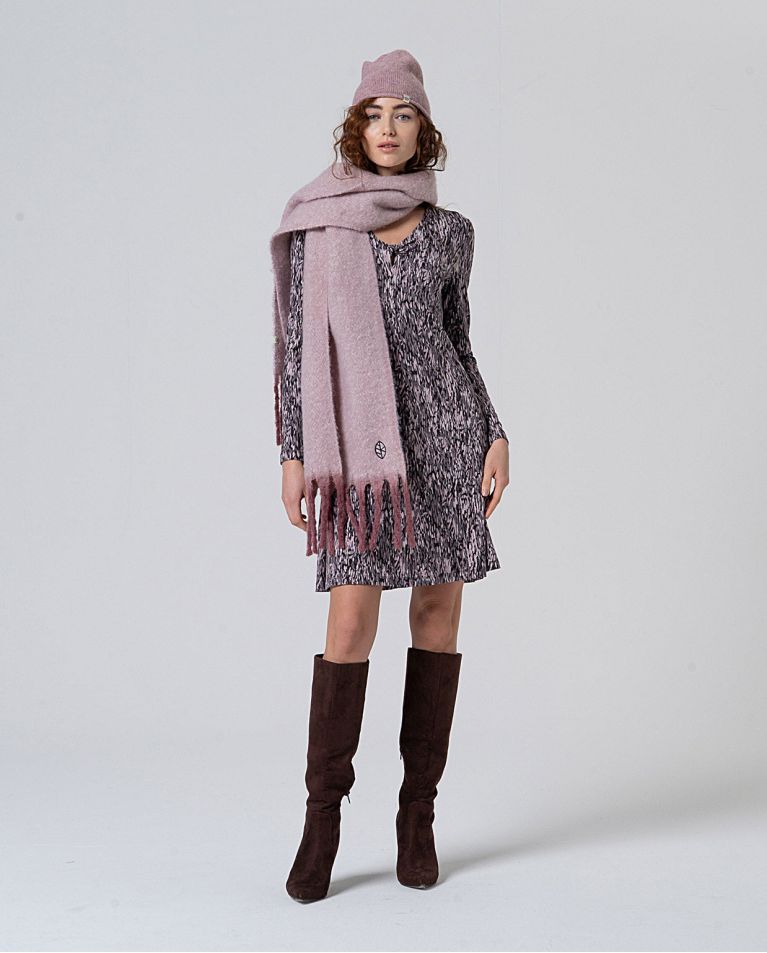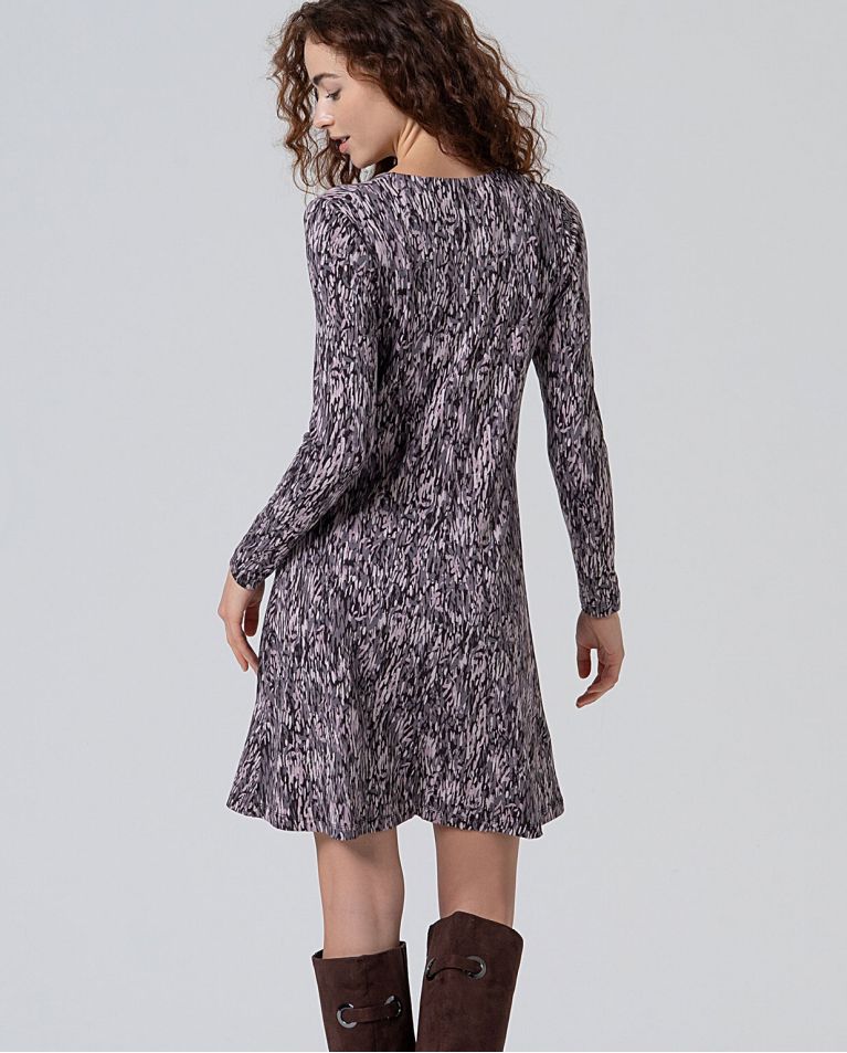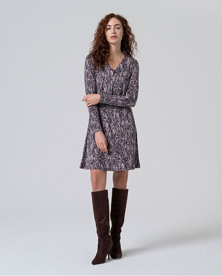 Vestido corto con escote pico fruncido y manga larga. Su corte ligeramente evasé y el tejido de viscosa Ecovero elástica lo hacen muy favorecedor y fácil de llevar. Un diseño cómodo y con personalidad.