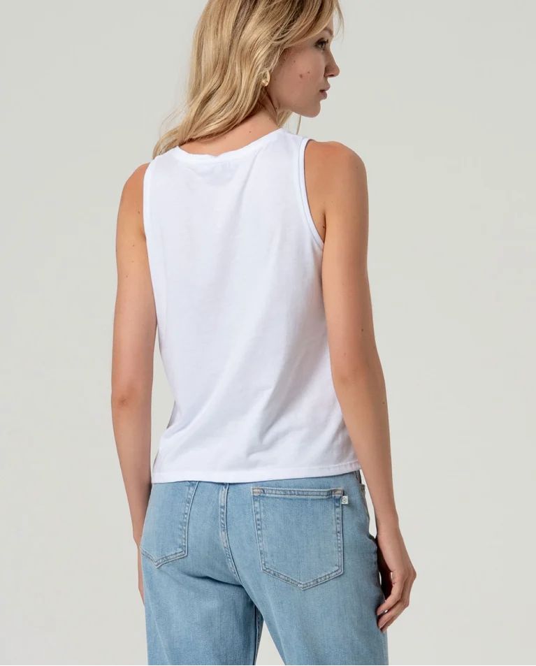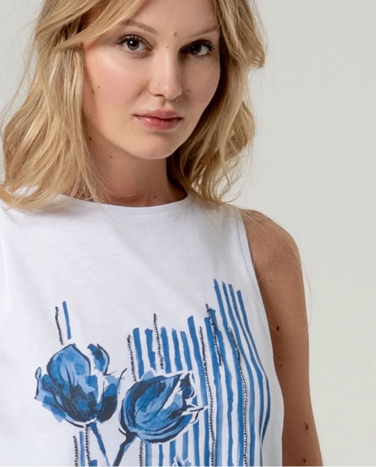 Camiseta sin mangas con escote barco y corte recto. Estampado frontal en contraste. Confeccionada en 100% algodón