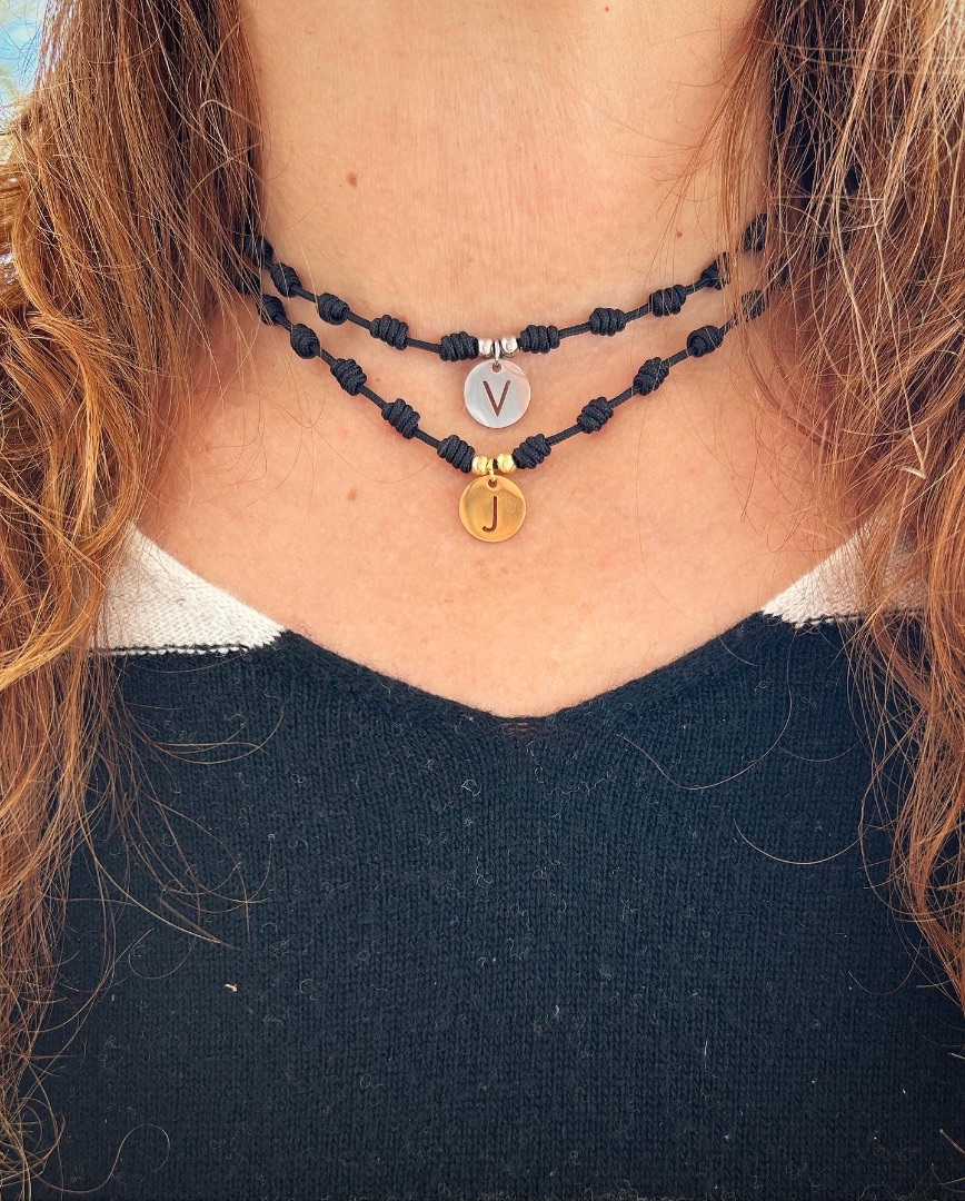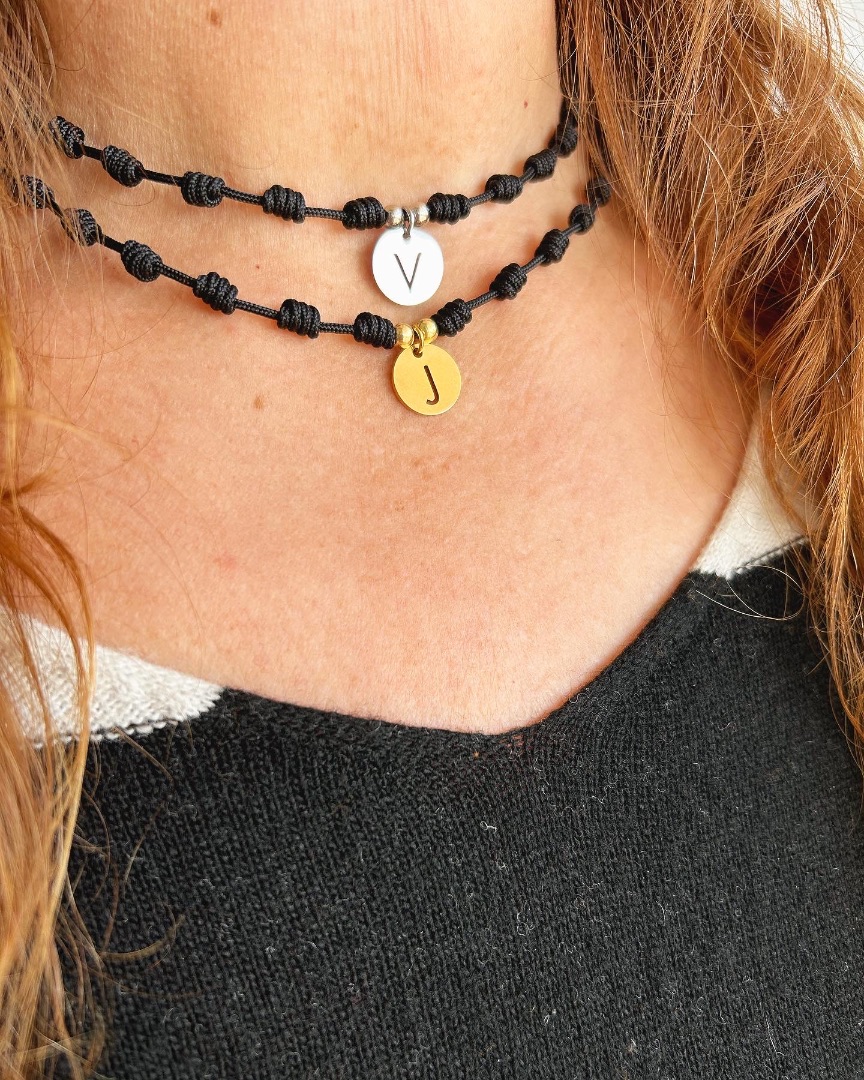 Disponible en dorado o plateado. La inicial és de acero, igual que el cierre (mosquetón). El acero no se malmete ni produce alérgias.
