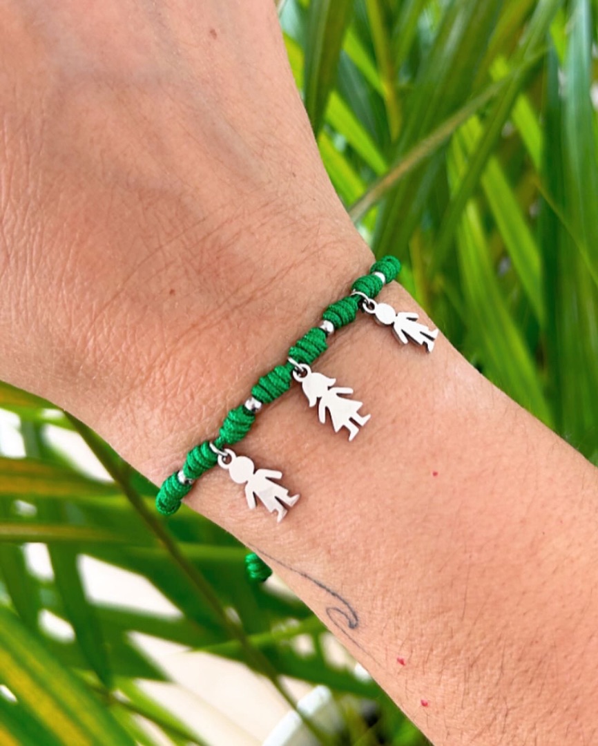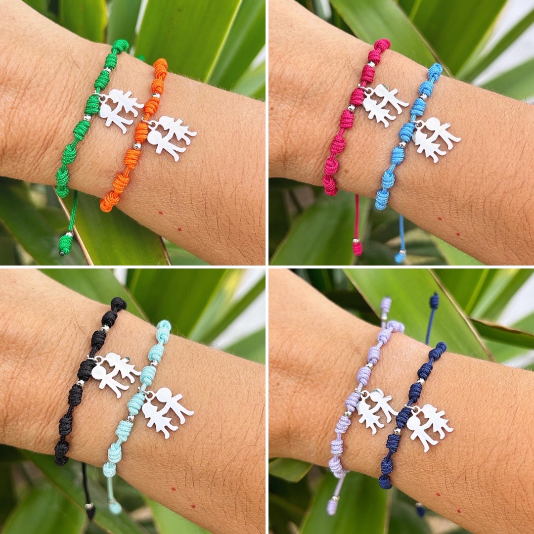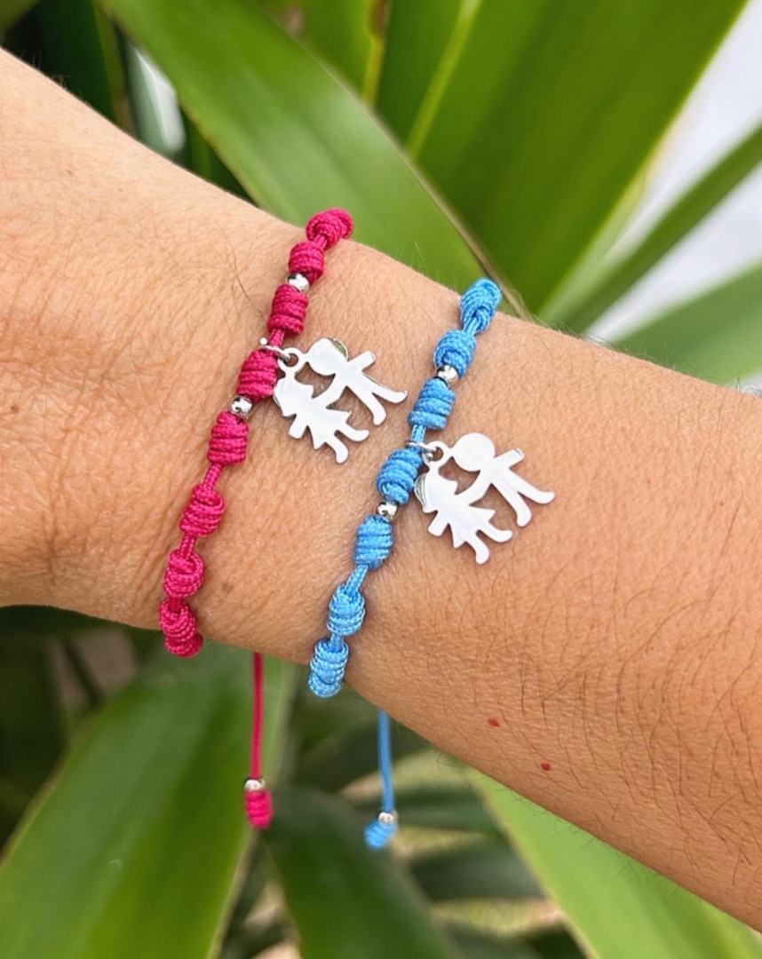 Colgantes disponibles: pareja niño/a o bién niña o niño. Se pueden colgar varios, aunque un máxime de 4 és lo recomendable para que quede bién. Bolitas también de acero. Cierre nudo corredero. El precio puede variar a partir de 3 colgantes. Hay varios colores de cordón disponibles.
