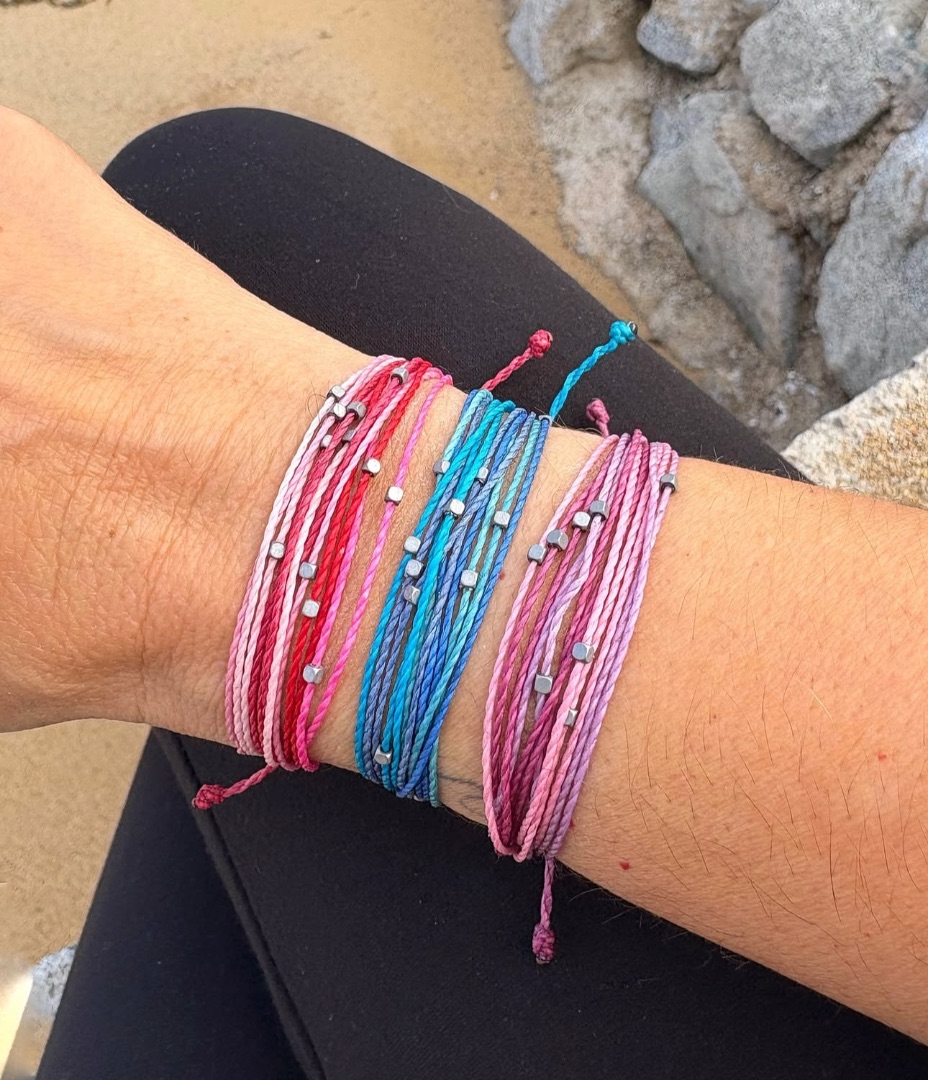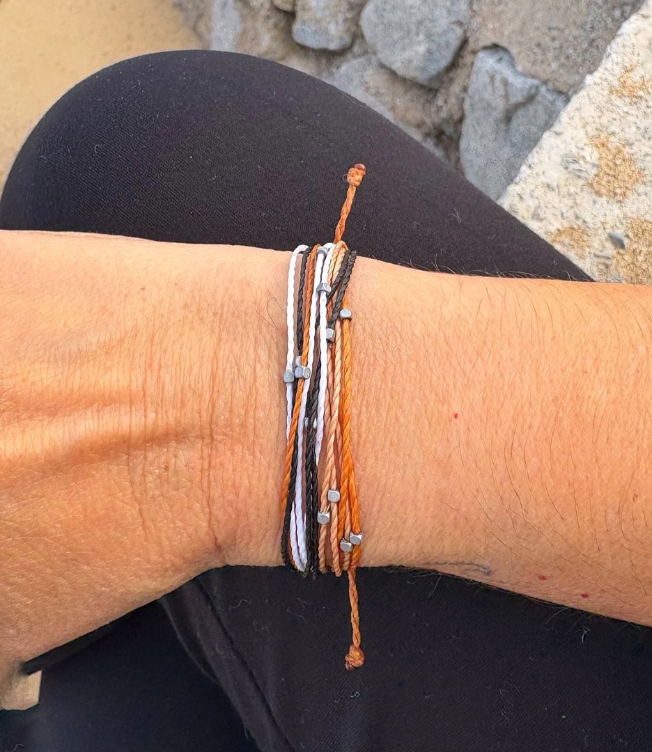 Pulsera con hilo encerado combinando varios colores. Te la hago a tu gusto, con varios colores o solo uno. Pequeñas Hematites plateadas. Resistente al agua. Cierre nudo corredero.