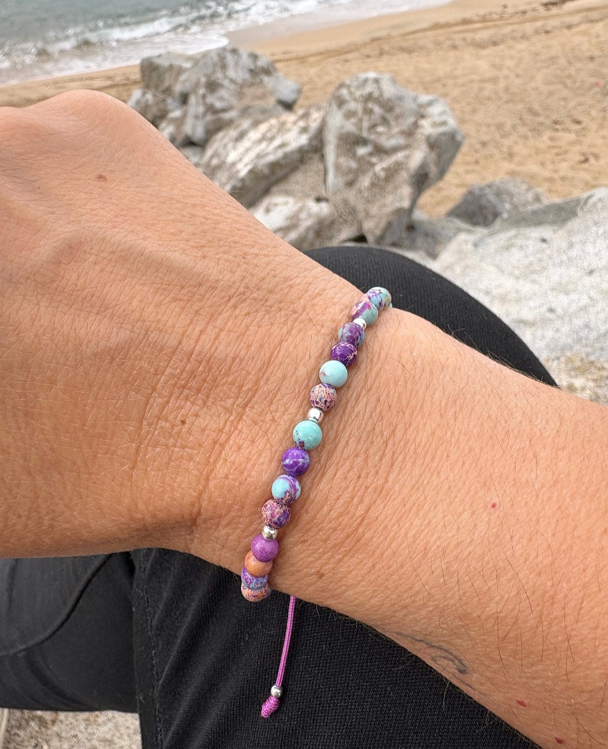 También la tienes sin colgante. Intercalando las piedras de jaspe con bolitas en plata de ley. Cierre nudo corredero.