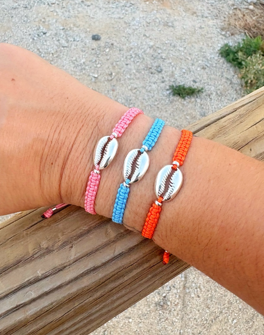 Aritos y tubitos a conjunto. Cierre nudo corredero. Si quieres la concha bañada en oro no dudes en consultármelo🤗. Puedes elegir el color del hilo entre gran variedad🌈. Resistente al💦