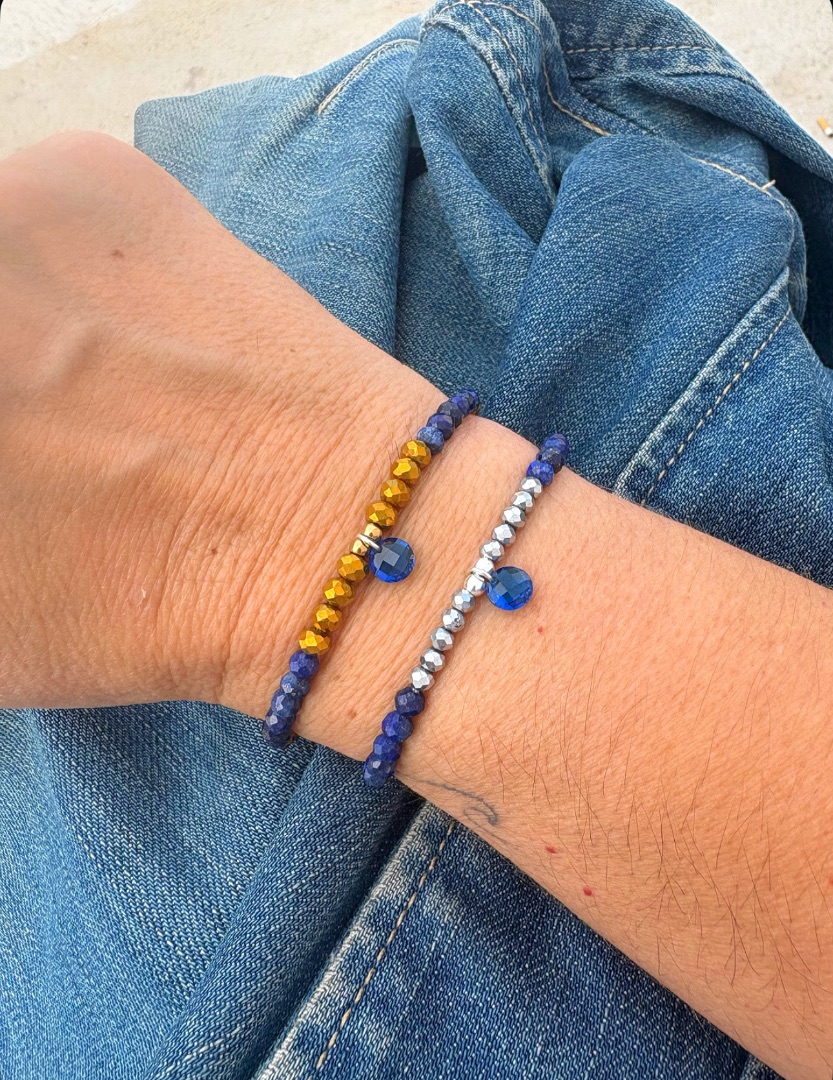 Pulsera de cuentas microfacetadas y lapislázuli