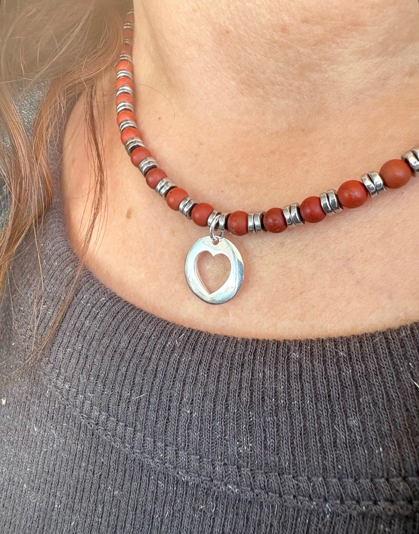 Collar jaspe y hematites con corazón de plata
