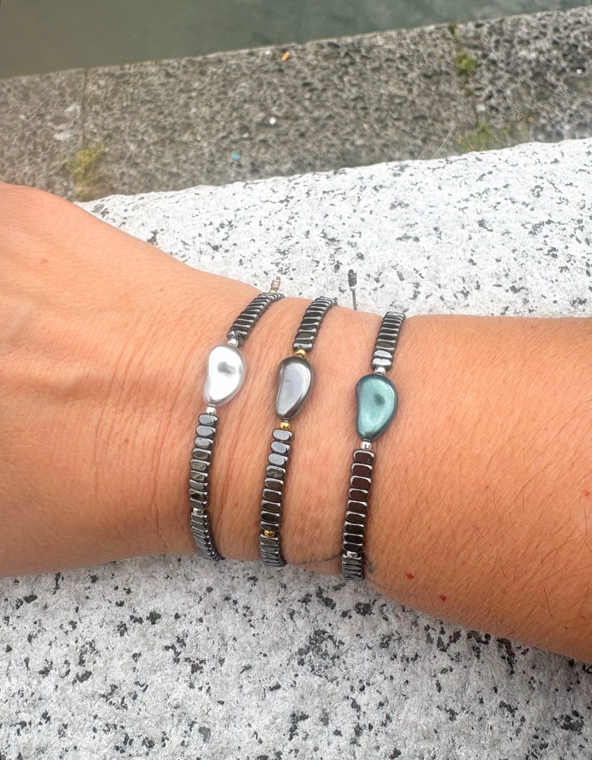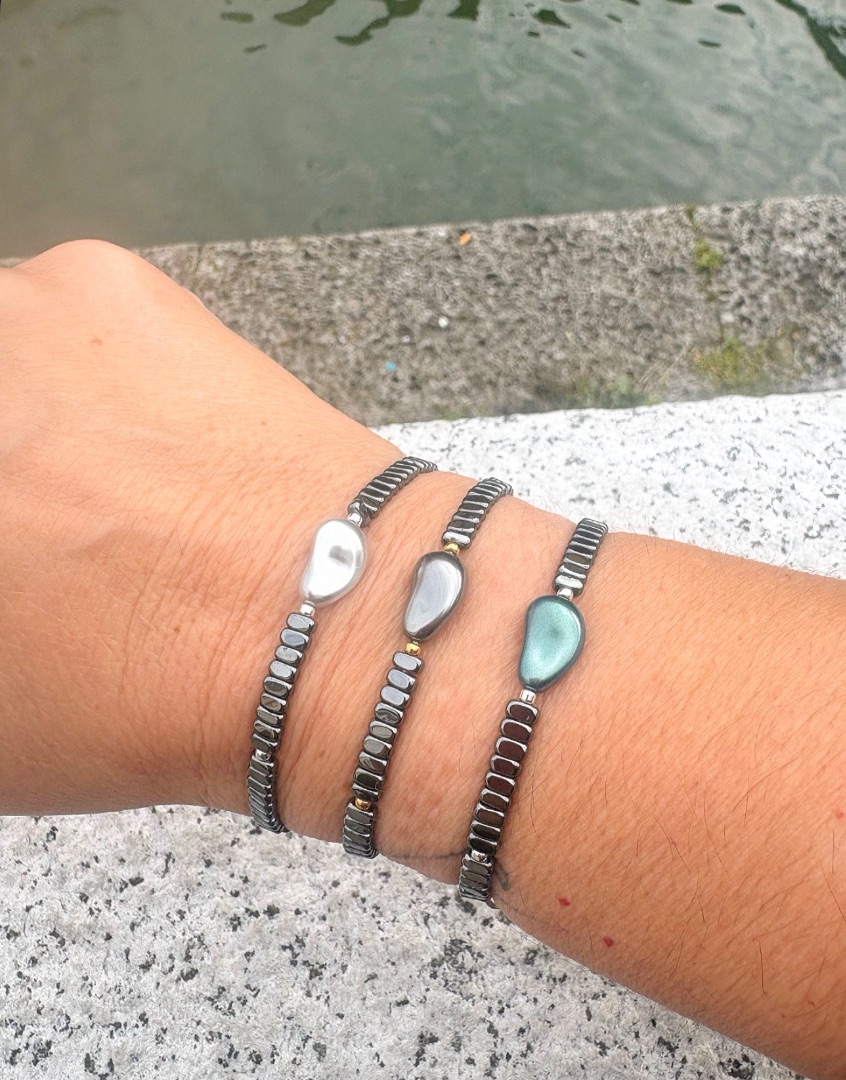Las baroques nacaradas las tienes disponibles en los colores de las fotos y en dos formas, redonda o en forma de nugget. Las hematites són piedras naturales en este caso de color gris oscuro, las he combinado con pequeños aritos en plata de ley. Cierre nudo corredero. Resistente al💦la plateada.